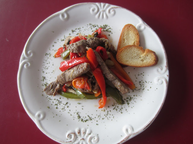 los pimientos y los cortamos en tiras, de aproximadamente el mismo grosor que